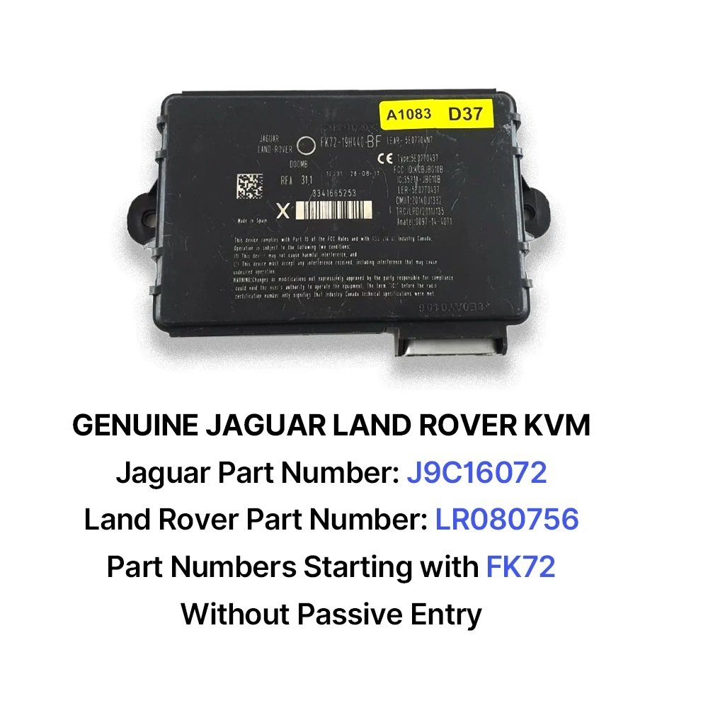 This Genuine Jaguar Land Rover KVM (RFA Module) comes in its original manufacturer packaging. This variant features three plugs for passive entry and is designed to be compatible with engineer Part Numbers Starting with FK72.